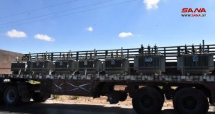 حماة-سانا وصلت قافلة من التجهيزات والمعدات والمحولات الكهربائية إلى محافظة حماة