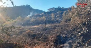 حماة-سانا تعمل فرق الإطفاء على إخماد حريق شب في الحراج الجبلية والأشجار المثمرة غرب قرية الزاوي بريف مصياف