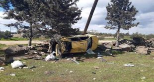 حماة-سانا أصيب أربعة أشخاص بحادث سير وقع اليوم على طريق عام حماة حمص عند مفرق بلدة تومين. وذكر مصدر في شرطة المحافظة بتصريح لمراسل سانا اليوم أن سيارة سياحية عامة يستقلها أربعة أشخاص من بينهم ثلاثة أطفال تدهورت اليوم على …