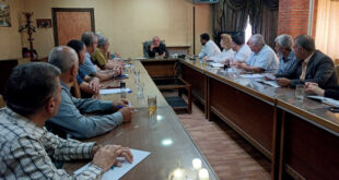 حماة-سانا بحث مدير المديرية المالية للضرائب والرسوم في محافظة حماة فايز رشيد، خلال اجتماع ضم مديري المالية في مناطق الغاب،