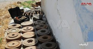 حماة-سانا استشهد طفلان وأصيب شخصان جراء انفجار لغم أرضي من مخلفات إرهابيي تنظيم “داعش” في قرية العمية في منطقة السلمية بريف حماة الشرقي. وذكر مصدر في قيادة شرطة حماة لمراسل سانا أن لغماً أرضياً من مخلفات تنظيم “داعش” الإرهابي انفجر …
