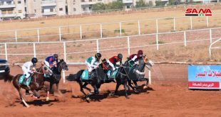حماة-سانا اختتم السباق الدوري الخامس الذي أقامته الجمعية السورية للخيول العربية الأصيلة ونادي باسل الأسد للفروسية بحماة وذلك بالتعاون مع مكتب الخيول في وزارة الزراعة والإصلاح الزراعي. وأسفر السباق الذي تضمن سبعة أشواط عن فوز الجواد زلزال الزين لمالكه حسن …
