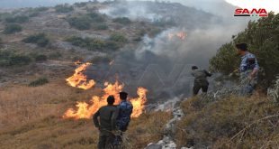 حماة-سانا أعلن قائد فوج إطفاء حماه العقيد ثائر الحسن في تصريح لـ سانا أن فرق الإطفاء تمكنت من إخماد حريق منطقة عين حلاقيم وحزور جنوب غرب مصياف بشكل شبه كامل ويجري حالياً معالجة وتبريد بعض بؤر النيران المحدودة. يتبع…