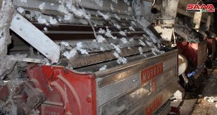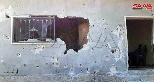 حماة-سانا اعتدت المجموعات الإرهابية بعدد من القذائف على قرية العزيزية بريف حماة الشمالي الغربي. وذكر مراسل سانا في حماة أن عددا من القذائف الصاروخية أطلقتها مجموعات إرهابية تنتشر بريف إدلب الجنوبي سقطت في قرية العزيزية أقصى الشمال الغربي لحماة ما …