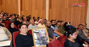 حماة-سانا كرمت مديرية شؤون الشهداء والجرحى والمفقودين بالتعاون مع محافظة حماة اليوم 250 أسرة شهيد ارتقى أبناؤهم دفاعاً عن تراب سورية وكتبوا بدمائهم الطاهرة ملاحم خالدة في البطولة والفداء خلال معاركهم المشرفة ضد التنظيمات الإرهابية على امتداد ساحة الوطن. وذكرت …