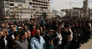 حماة-سانا شهدت مدينة حماة بعد صلاة الجمعة اليوم تجمعاً جماهيرياً حاشداً في ساحة العاصي، تحت شعار “جمعة الوفاء لدماء