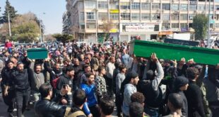 حماة-سانا شيع المئات من أبناء حماة بعد ظهر اليوم 8 شهداء، ارتقوا خلال مواجهة فلول النظام البائد في الساحل