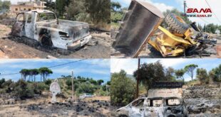 حماة-سانا أسفر العدوان الإسرائيلي الغاشم على منطقة مصياف بريف محافظة حماة الغربي مساء أمس عن استشهاد 18 مواطناً وجرح 37 آخرين، إضافة إلى إلحاقه أضراراً فادحةً بالبنى التحتية وشبكات وخطوط الكهرباء والمياه والهاتف والصرف الصحي والطرق والآليات. وفي تصريحات لمراسل …