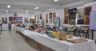 حماة-سانا ضم المعرض الفني الذي أقامه فرع الاتحاد الوطني لطلبة سورية بحماة اليوم في معهد إعداد المدرسين قسم التربية الفنية التشكيلية أكثر من 200 لوحة فنية وعمل يدوي من الحفر والحرق على الخشب والرسم على الزجاج والضغط على النحاس ومجسمات …