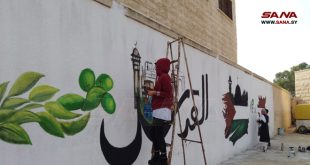 حماة-سانا انطلاقاً من رسالة الفن الإنسانية ودوره في دعم القضية الفلسطينية، نفذت مؤسسة صباء بيت الفن والأدب مبادرةً تضمنت رسم