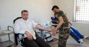 حماة-سانا بمشاركة أكثر من 200 متبرع ومتبرعة نظمت شعبة العمال لحزب البعث العربي الاشتراكي في حماة بالتعاون مع فعاليات اجتماعية ونسائية وشبابية وطلابية اليوم حملة تبرع بالدم في مركز نقل الدم بحي الشريعة في مدينة حماة دعما لجرحى الجيش وجرحى …
