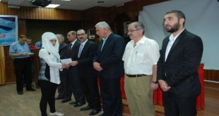 حماة-سانا كرمت جامعة حماة اليوم بالتعاون مع شعبة التعليم العالي لحزب البعث العربي الاشتراكي /26/ طالبا وطالبة من أبناء وبنات الشهداء الدارسين في كليات ومعاهد الجامعة وذلك خلال حفل أقامته على مدرج كلية طب الأسنان. وقال مصطفى سكري أمين فرع …