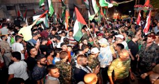 حماة-سانا خرج المئات من ممثلي الفصائل الفلسطينية والأهالي في مخيم العائدين الفلسطينيين بمدينة حماة مساء اليوم في مسيرة