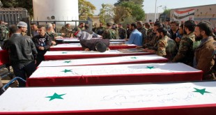 حماة وطرطوس-سانا بمشاركة رسمية وشعبية حاشدة تم اليوم فى حماة وطرطوس تشييع جثامين 35 شهيدا من أبطال حامية مطار كويرس قضوا دفاعا عن المطار والكلية الجوية ضد اعتداءات إرهابيي تنظيم “داعش” في أوقات مختلفة خلال السنوات الثلاث الماضية. ففي حماة شيعت …