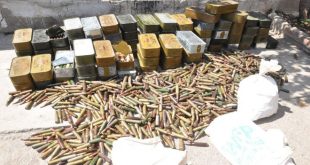 حمص-سانا ضبطت الجهات المختصة في حمص خلال عملية نوعية مستودع ذخيرة للتنظيمات الإرهابية في قرية الحمرا بريف حماة الشرقي قرب الحدود الإدارية لمحافظة حمص. وأفاد مراسل سانا في حمص بأن دوريات تابعة للجهات المختصة وبناء على معلومات استخباراتية دقيقة داهمت …