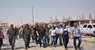 حمص-سانا اطلع محافظ حمص طلال البرازي وعدد من مديري المؤسسات والدوائر الخدمية اليوم على واقع الفعاليات الاقتصادية والصحية لمدينة تدمر والمراحل الأخيرة من مشروع إزالة الأنقاض والنفايات الصلبة من المدينة. وشملت الجولة الشوارع الرئيسية للمدينة والساحات التي تمت إزالة الأنقاض …