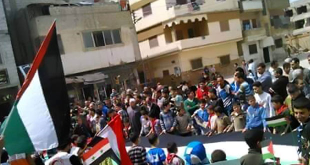 حمص-سانا نظم أهالي مخيم العائدين بحمص اليوم وقفة تضامنية في ساحة الشهيد أحمد شريح بالمخيم تضامنا مع أهالي مخيم اليرموك بدمشق ورفضا لجرائم التنظيمات الإرهابية المسلحة وذلك بمشاركة مختلف مؤسسات المجتمع المحلي بالمخيم والفصائل الفلسطينية وجمعية الكشافة والمرشدات الفلسطينية. وندد …