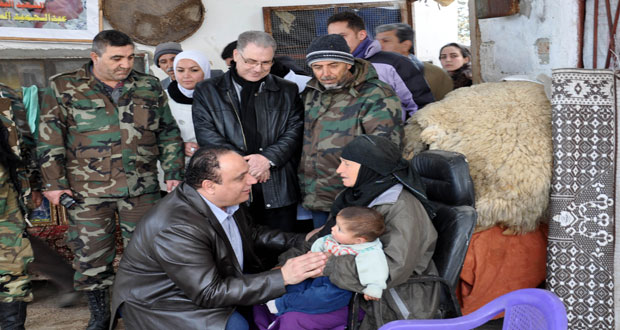 حمص-سانا زار محافظ حمص طلال البرازي أسر وذوي عدد من شهداء قرية جبورين بريف حمص الشمالي التي شكلت بحد ذاتها أسطورة في الصمود بوجه الهجمات الإرهابية المتكررة وذلك تقديرا لما قدموه من تضحيات في سبيل الدفاع عن الوطن وصون كرامته. …