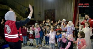 حمص-سانا بمشاركة عشرات الأطفال من ذوي الشهداء والجرحى أقيم حفل ترفيهي في مقر جمعية “صامدون رغم الجراح” بحمص، وتضمن