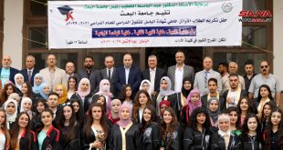 حمص-سانا كرمت جامعة البعث في حمص اليوم 75 طالباً وطالبة من أوائل حاملي شهادة الباسل للتفوق في كليات