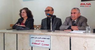 حمص-سانا تحدث الكاتب “عطية مسوح” في محاضرة استضافها اتحاد كتاب حمص عن أبرز قصائد الشاعر “مظهر الحجي”