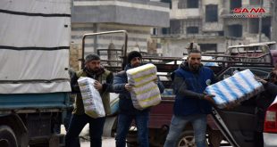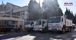 حمص-سانا انطلقت اليوم قافلة مساعدات إغاثية من محافظة حمص إلى المنكوبين من الزلزال في محافظات حلب واللاذقية.