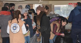 حمص-سانا لليوم الثالث على التوالي يستنهض أبناء مدينة حمص كل ما لديهم من طاقة وعزم لمساندة المتضررين