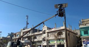 حمص-سانا قام مجلس بلدة شين بريف حمص الغربي بتركيب أجهزة إنارة تعتمد على الطاقة
