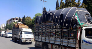 حمص-سانا استقبلت مدينة حمص اليوم قافلة من الأهالي المهجرين في مخيمات الشمال السوري،