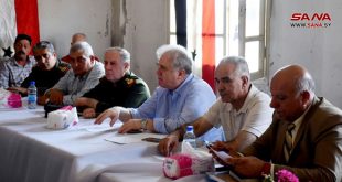 حمص-سانا طالب أهالي قرى تل الشور وعين الزرقا وحديدة العاصي وجوبر والفايزية بريف حمص الجنوبي الغربي خلال لقائهم محافظ حمص