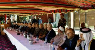 حمص-سانا أقامت محافظة حمص اليوم خيمة وطن بمشاركة شيوخ ووجهاء العشائر من جميع المحافظات السورية