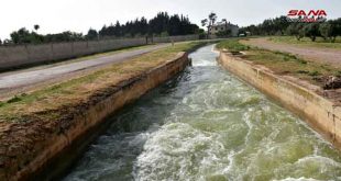 حمص-سانا أطلقت وزارة الموارد المائية ومحافظة حمص اليوم المياه في شبكة ري الحولة شمال غرب مدينة حمص بعد اعادة تأهيلها
