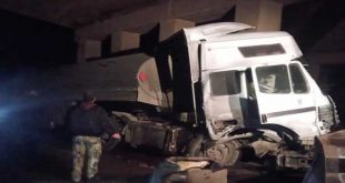 حمص-سانا أصيب شخص جراء حادث سير على طريق حمص طرطوس عند جسر بلدة الزارة بريف حمص الغربي. وذكر العميد غياث عاقل مدير الدفاع المدني بحمص لمراسل سانا أن غرفة عمليات الفرع تلقت بلاغاً حول تعرض صهريج مخصص لنقل المحروقات “البنزين” …