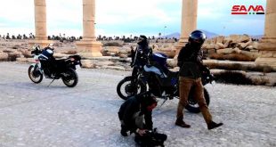 تدمر-سانا زار 4 رحالة أجانب على دراجاتهم النارية مدينة تدمر التاريخية بهدف تأليف كتاب عن سورية ومناطقها الأثرية والسياحية