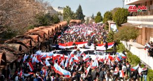 حمص-سانا نفذ طلبة جامعة البعث في حمص والعاملون فيها وقفة تضامنية اليوم مع روسيا وشعبها بمواجهة السياسات الأمريكية الغربية الرامية إلى تقويض أمنها واستقرارها. ورفع المشاركون في الوقفة الاعلام الوطنية السورية والروسية وهتفوا بالنصر للبلدين على الإرهاب والنازية والداعمين لهما. …