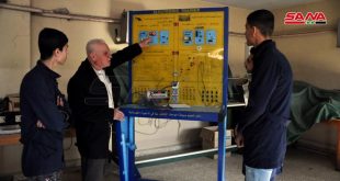 حمص-سانا حرص معلم حرفة الالكترون في ثانوية الشهيد أيهم راشد ديوب المهنية بحمص عبد الكريم ابراهيم على توظيف أفكاره وابتكاراته