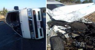 حمص-سانا أصيب اليوم خمسة أشخاص بجروح طفيفة جراء تصادم سيارة سياحية مع سرفيس لنقل الركاب على طريق دمشق حمص. وأفاد مصدر في قيادة شرطة حمص لمندوب سانا بوقوع حادث بين سيارة سياحية نوع مرسيدس مع سرفيس لنقل الركاب على طريق …