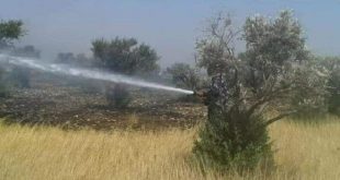 حمص-سانا أخمد كوادر فوج إطفاء حمص اليوم حريقاً نشب بمساحات من الأعشاب اليابسة وأشجار الزيتون على الطريق الدولي حمص-طرطوس قرب مفرق بلدة الزارة بريف حمص الغربي. وذكر العميد حسن عمار قائد فوج إطفاء حمص لمراسل سانا أن غرفة عمليات الفوج …