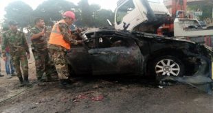 حمص-سانا توفي شخصان وأصيب ثالث جراء تدهور سيارتهم فجر اليوم على طريق حمص دمشق قرب مؤسسة الإنشاءات العسكرية. وذكر العميد غياث عاقل مدير الدفاع المدني بحمص لمراسل سانا أن غرفة عمليات الفرع تلقت بلاغاً حول نشوب حريق بسيارة تكسي عمومي …