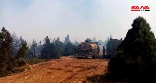 حمص-سانا تواصل فرق الاطفاء في محافظة حمص مدعومة بعناصر من الجيش العربي السوري جهودها لإخماد الحريق الذي امتد مساء أمس من الأراضي اللبنانية باتجاه أطراف قرية أكوم بمنطقة القصير بريف حمص الجنوبي الغربي. وقال العميد غياث عاقل مدير الدفاع المدني …
