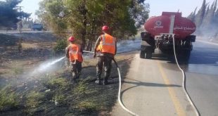 إخماد حريق أعشاب يابسة وأشجار حراجية بريف حمص