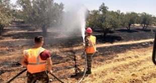 حمص-سانا أخمد عناصر الدفاع المدني وإطفاء مديرية زراعة حمص اليوم حريقاً نشب بأعشاب يابسة وأشجار حراجية بريف حمص. وذكر العميد غياث عاقل مدير الدفاع المدني بحمص لمراسل سانا أن غرفة عمليات الفرع تلقت بلاغاً حول نشوب حريق بأعشاب يابسة وأشجار …