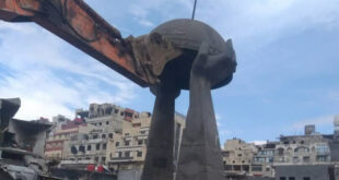 حمص-سانا ضمن حملة إزالة مخلفات النظام البائد، أزالت ورشات مجلس مدينة حمص النصب الموجود