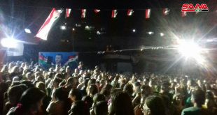 حمص-سانا احتفاء بفوز الدكتور بشار الأسد بمنصب رئيس الجمهورية العربية السورية وبحضور جماهيري حاشد انطلق مساء اليوم حفل فني لنجوم الغناء العربي فارس كرم وحسام جنيد وعلى الديك وحسين الديك في ملعب الباسل في حي بابا عمرو بحمص. وحمل آلاف …