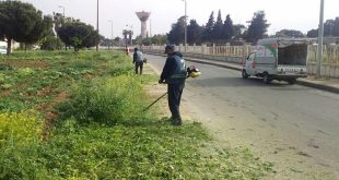 حمص.. طلاء جذوع الأشجار وتقليم وتعشيب المنصفات والحدائق