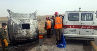 حمص-سانا توفي سائق صهريج لنقل المشتقات النفطية جراء حريق نشب في كبين الصهريج بموقع البريج في ريف حمص على الطريق الدولي حمص-دمشق. وأوضح العميد غياث عاقل مدير الدفاع المدني بحمص في تصريح لمراسل سانا أن عناصر الدفاع المدني بالتعاون مع …