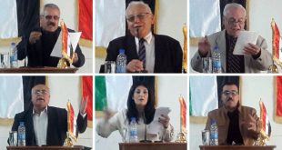 حمص-سانا حضرت تضحيات أبناء الوطن بوجه الحرب الإرهابية وقضايا الأمة في اللقاء الشعري الذي دعت له رابطة الخريجين الجامعيين في حمص. وبدأ اللقاء الذي أقيم بمناسبة الذكرى الـ 58 لثورة 8 آذار الشاعر حبيب ناصر حيث تغنى في قصيدته بأمجاد …