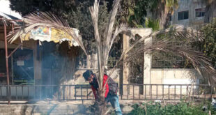 حمص-سانا تنفذ مديرية زراعة حمص حملة لمكافحة حشرة سوسة النخيل الحمراء التي تصيب أشجار النخيل في عدد من المواقع
