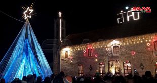 حمص-سانا وسط أجواء من الفرح بقرب أعياد الميلاد ورأس السنة أضاءت اليوم كنيسة مار إلياس للروم الملكيين الكاثوليك بربلة في ريف حمص شجرة الميلاد في الكنيسة. وافتتحت مغارة الميلاد والسوق الخيري الأول من نوعه في البلدة بحضور حشد من الأهالي …