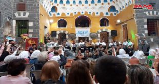 حمص-سانا موشحات وأغان تراثية ورقصات مولوية تضمنها الحفل الختامي لفعاليات معرض “على العتيق” بقصر الزهراوي في حي الحميدية بحمص. الحفل الذي استمر لنحو ثلاث ساعات ضم أغاني منوعة من التراث الغنائي قدمتها فرقة نادي دوحة الميماس للموسيقا والتمثيل لتطرب الجمهور …